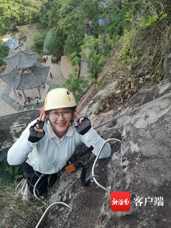 游客在瓊海白石嶺景區(qū)體驗“叢林穿越”。記者 蘇靚 攝