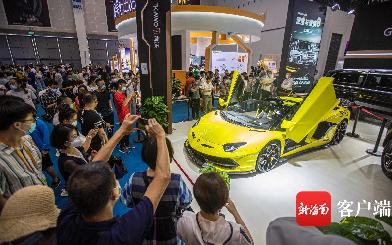 消博會(huì)上2000多萬元的蘭博基尼跑車吸引大批觀眾拍照打卡。記者 劉洋攝