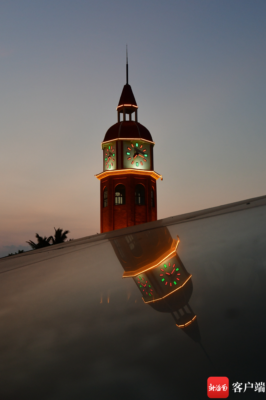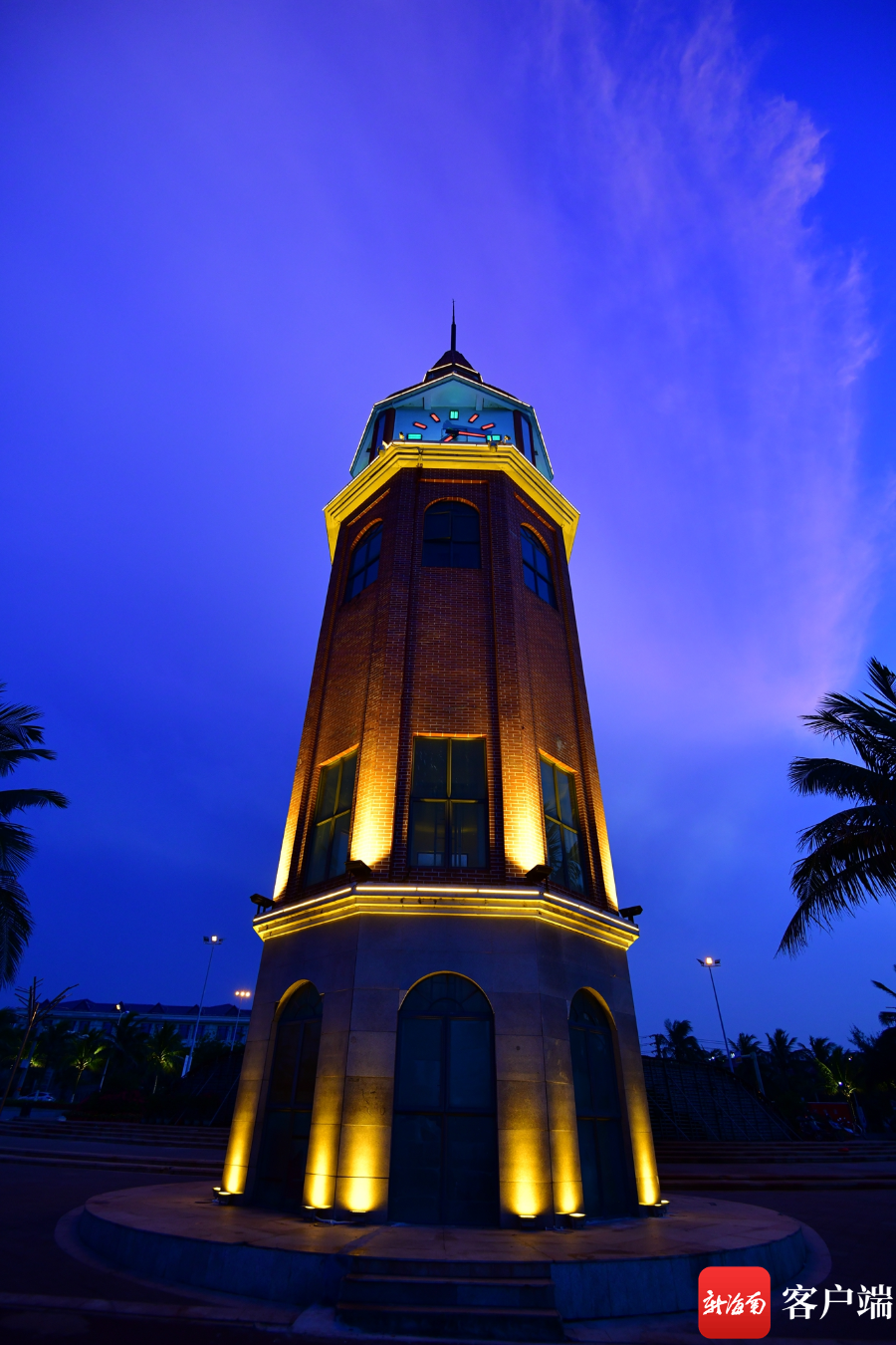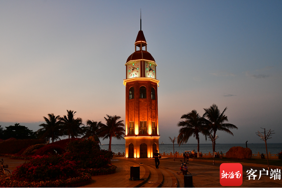 新海南客戶端、南海網(wǎng)、南國都市報5月13日消息(記者 陳衛(wèi)東)近日,海口西海岸觀海臺鐘樓裝上了輪廓燈,夜幕降臨時,黃色暖光映射在紅色鐘樓上,在深藍(lán)色天空的背景襯托下,非常漂亮。