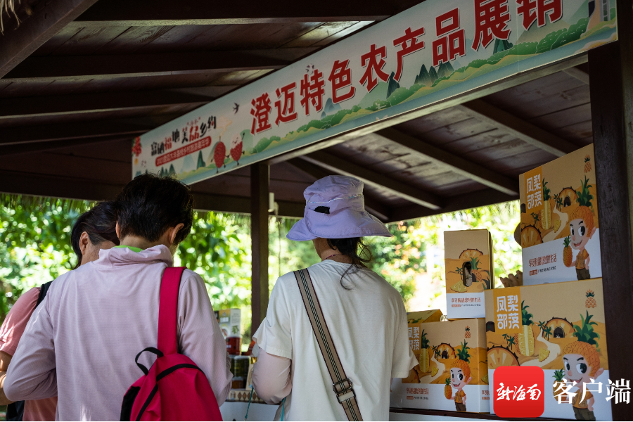 在澄邁農(nóng)特產(chǎn)品展銷攤位上,大豐荔枝、澄邁鳳梨酥、橋頭地瓜、瑞溪牛肉干、粽子等農(nóng)特產(chǎn)品受到游客青睞。