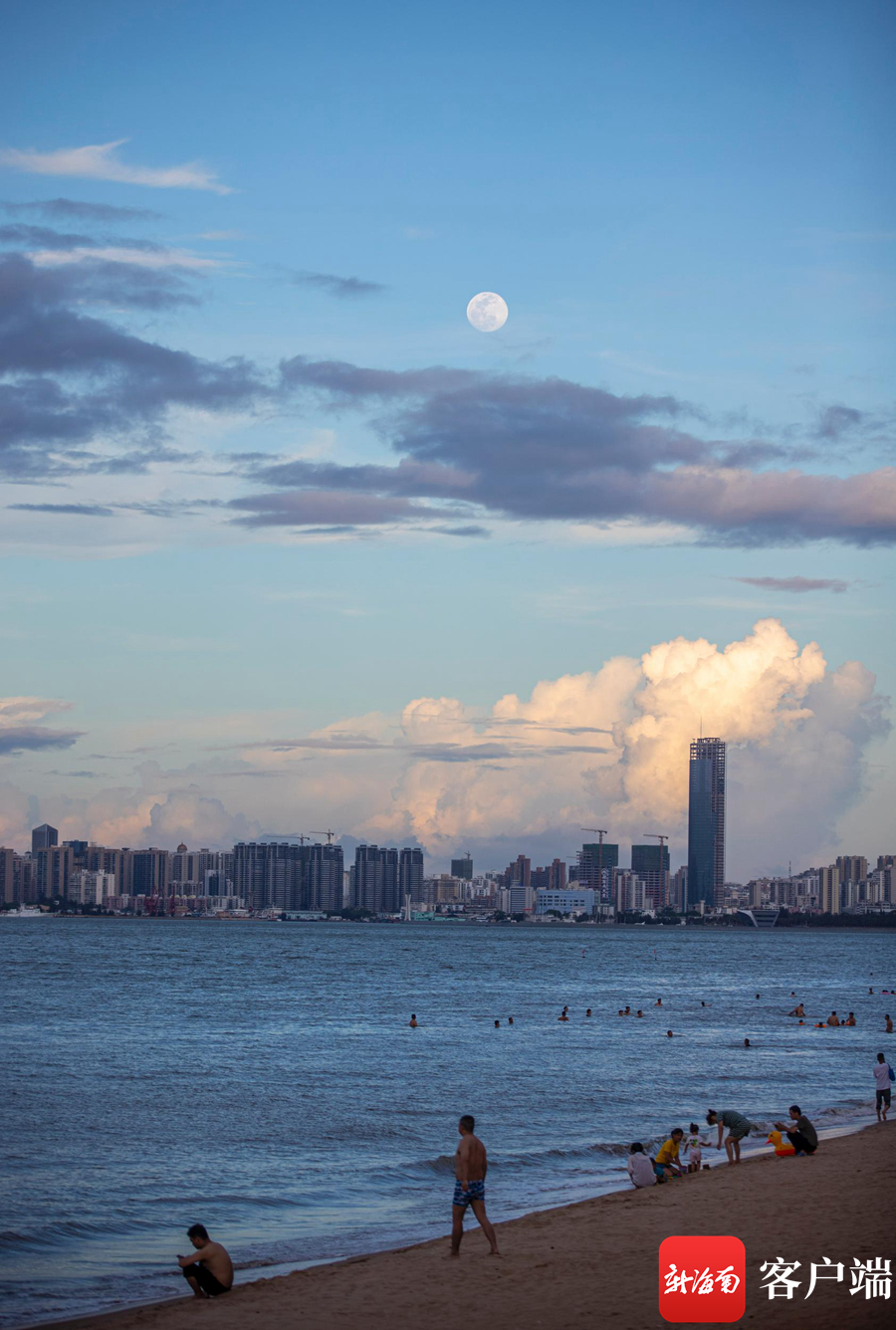 海口的天空中升起的一輪明月。記者 劉洋攝