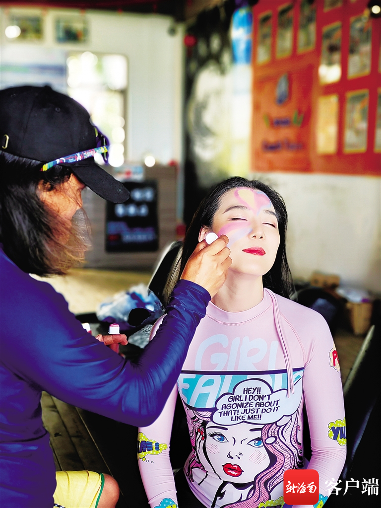 涂抹防曬泥,準備沖浪。(受訪者供圖)