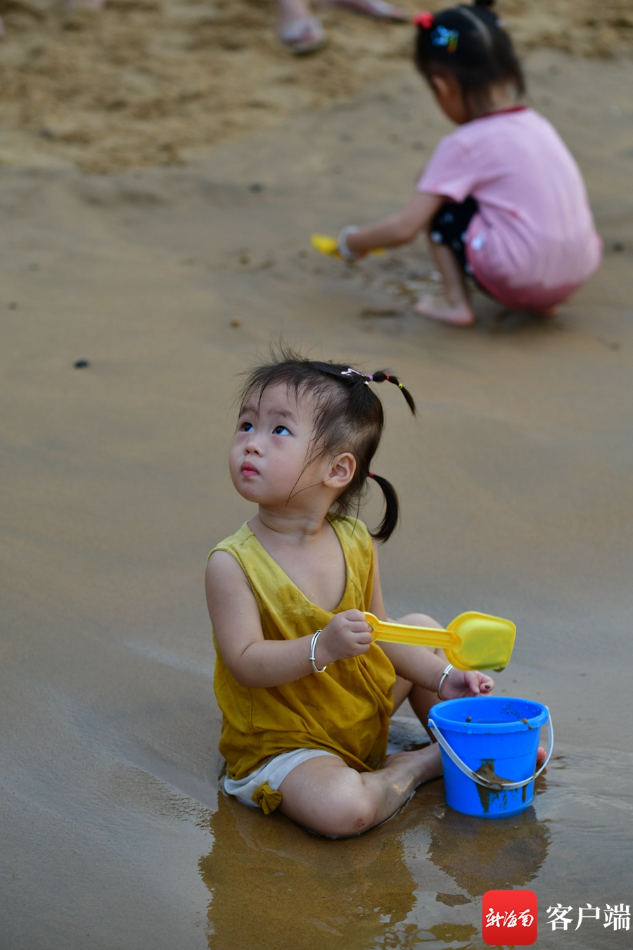 孩子們在假日海灘“洗龍水”。記者 汪承賢攝