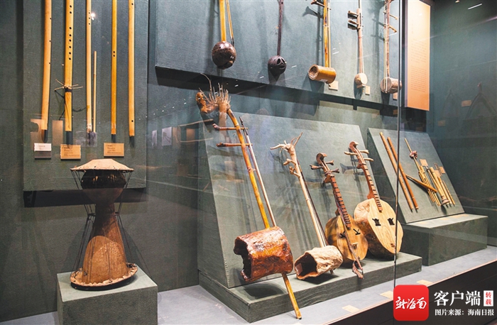 省民族博物館展出的黎族竹木樂器。海南日報記者 宋國強 攝