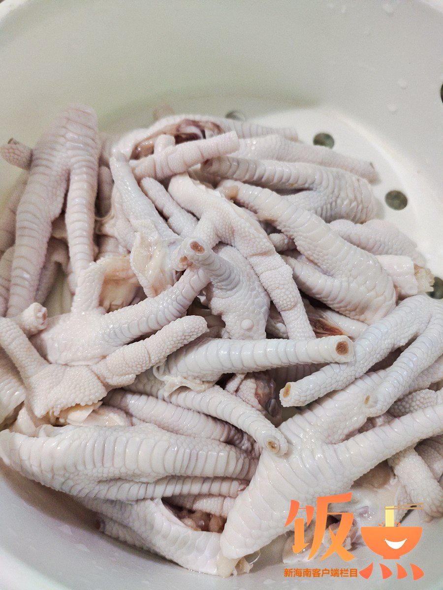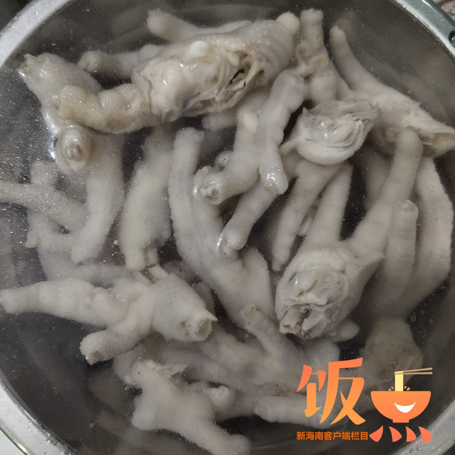 1、雞爪洗凈,冷水下鍋,加姜片料酒去腥,煮開后撈出浮沫,再次洗凈