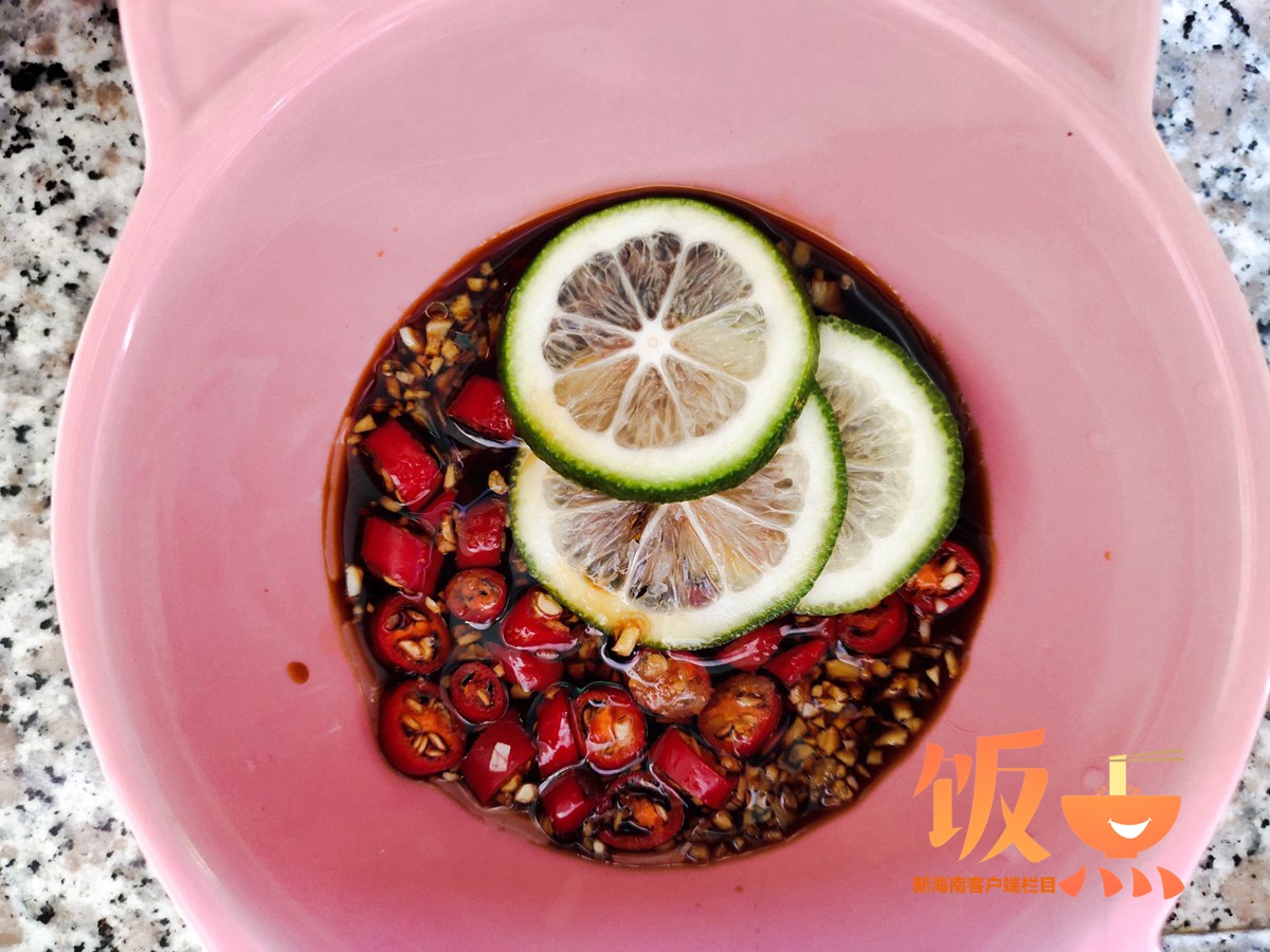 配料:蒜/小米椒/生抽/醋/鹽/糖/花生油/青檸檬