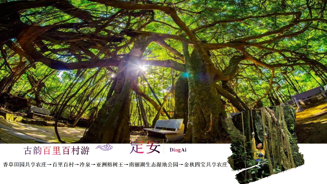 香草田園共享農莊→百里百村→冷泉→亞洲榕樹王→南麗湖生態濕地公園→金秋四寶共享農莊