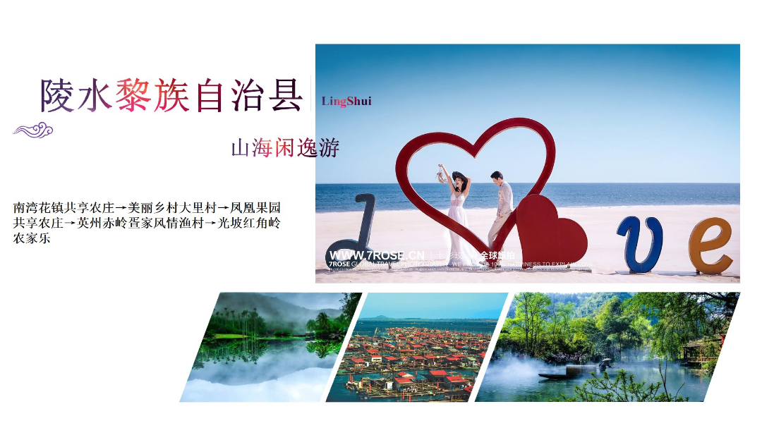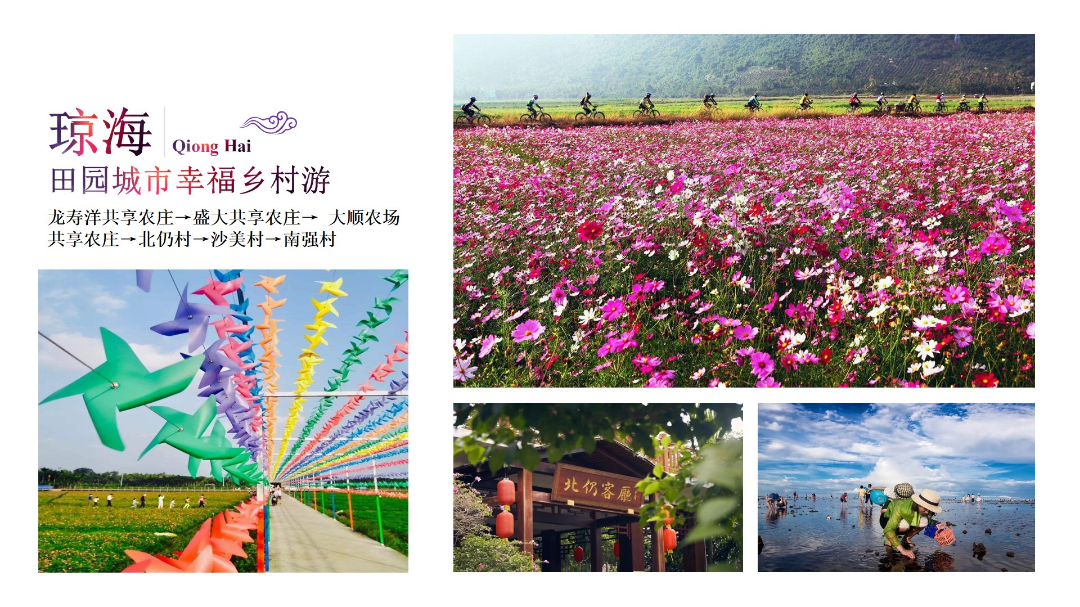南灣花鎮共享農莊→美麗鄉村大里村→鳳凰果園共享農莊→英州赤嶺蛋家風情漁村→光坡紅角嶺農家樂