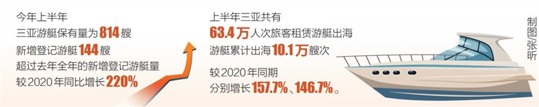 近年來,三亞不斷豐富游艇出海游產品和水上項目,游艇旅游成三亞新的旅游消費熱點。旅客出海游玩方面,上半年三亞共有63.4萬人次旅客租賃游艇出海,游艇累計出海10.1萬艘次,較2020年同期分別增長157.7%、146.7%。