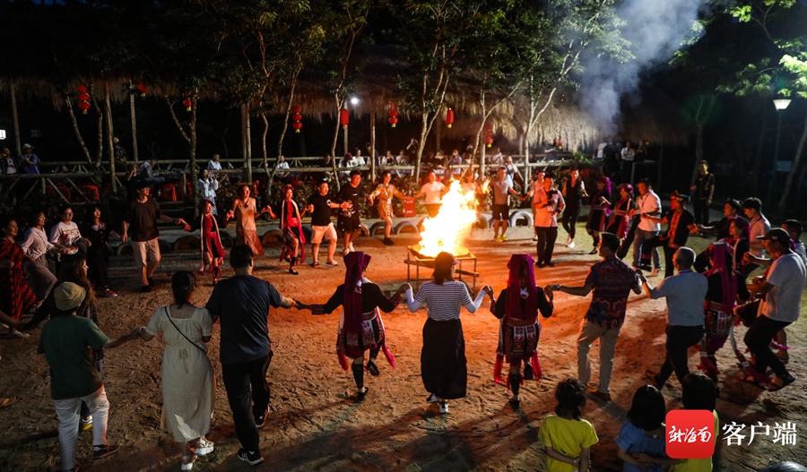 7月18日,全媒體采訪團走進瓊中什寒村,參加篝火晚會狂歡。記者 李昊 攝