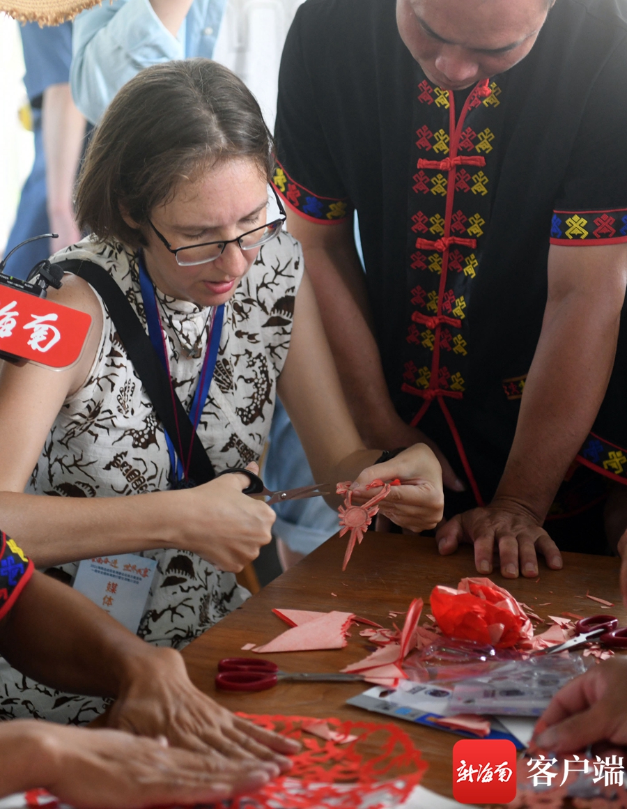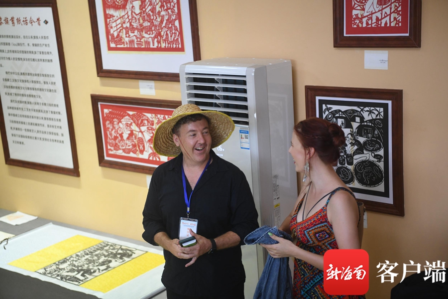 7月20日,海外傳播官在西黎村體驗大安剪紙的制作。記者 沙曉峰攝