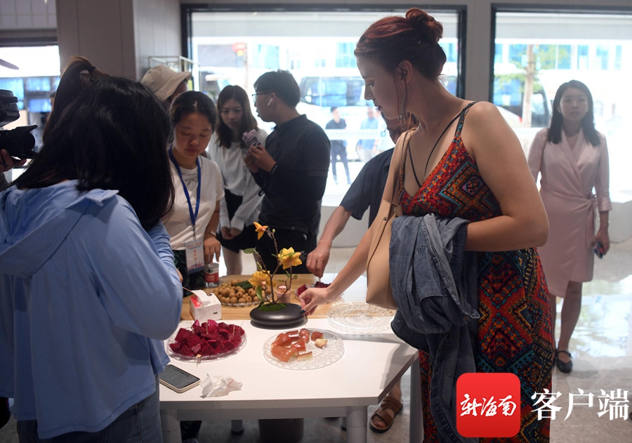 7月20日,全媒體采訪團在樂東鄉村振興綜合服務中心品嘗特色水果。記者 沙曉峰攝