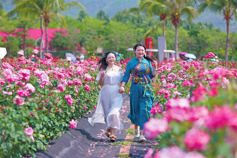 游客在位于博后村的亞龍灣國際玫瑰谷賞花游玩。三亞日報記者 李學仕 攝