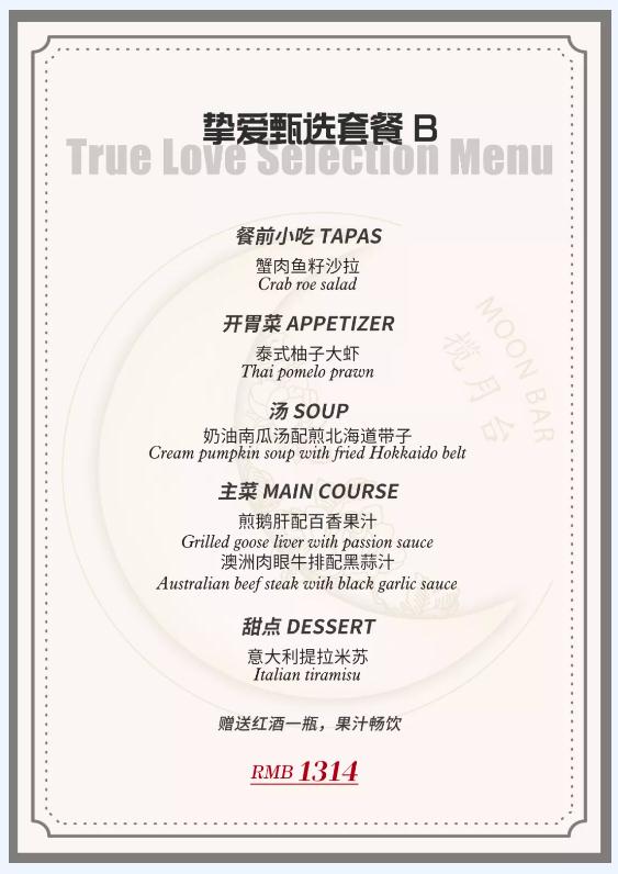 2.定制雙人甜蜜位上套餐一份(含紅酒一瓶,果汁)或10人聚餐雞尾酒套餐一份二選一(參考價1,314元每套)