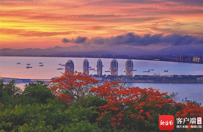 在鹿回頭風景區遠眺三亞城市傍晚景色。豐收 攝