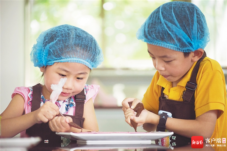 小游客在興隆熱帶植物園動手做巧克力。海南日報記者 袁琛 攝
