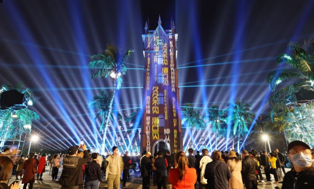 在普天同慶的日子里,鐘樓永不缺席!一個海口最具有代表性的地標(biāo)建筑,利用高科技及數(shù)字化處理,完美結(jié)合鐘樓優(yōu)越地理位置,椰影婆娑,鐘樓光影絢麗多彩,變化層次多樣,通過主題場景切換,將海口的城市風(fēng)貌表現(xiàn)得淋漓盡致,以最直接的方式向市民游客展現(xiàn)海口的魅力。