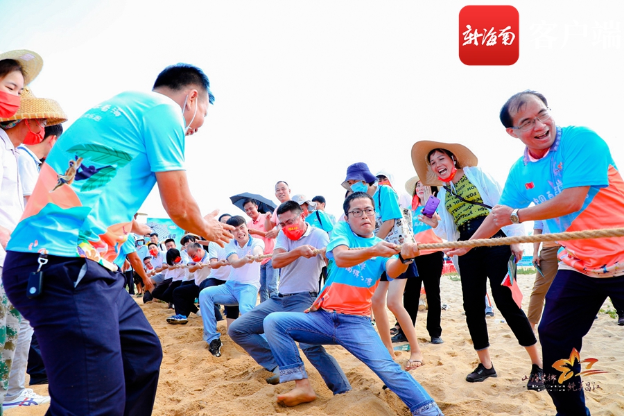 沙灘趣味運動會拔河項目比賽現場。