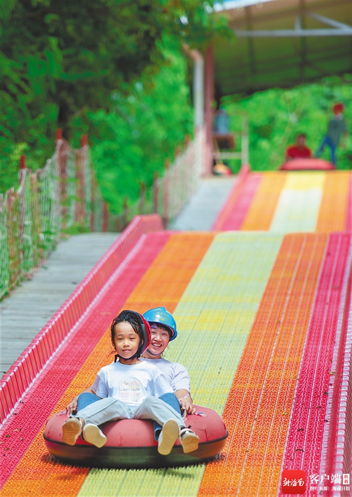 在儋州市蘭洋鎮的海南蓮花山文化旅游景區,驚險刺激的“玻璃水滑”、獵奇有趣“叢林飛龍”高空索道等大型游樂項目開放營業。“來蓮花山,既能觀賞生態美景,又能‘解鎖’多種娛樂項目,一站式滿足多類旅游體驗,非常值得。”來自海口自駕游客王凡說。