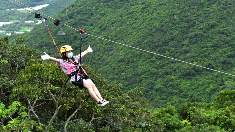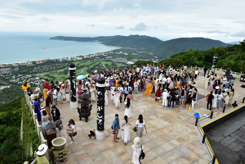 10月15日,游客在亞龍灣熱帶天堂森林旅游區登高望遠,在雨林中“森”呼吸,領略深秋時節亞龍灣熱帶天堂海岸雨林的美麗風光。黃慶優 攝