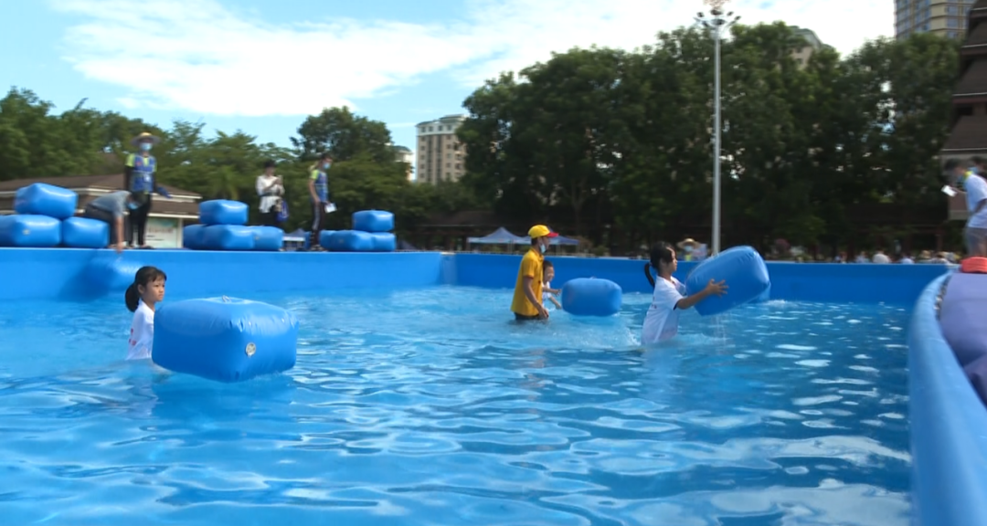 此次活動采用新潮互動形式,將跑步、冰壺、射擊、拔河、足球、乒乓球、籃球、投壺、跳繩傳統(tǒng)的體育項目延展成更適合多年齡段群體參與的活動,并與“親水”結(jié)合,打造清涼別樣的水上嬉水嘉年華。活動現(xiàn)場,群眾、游客積極參與其中,促進全民健身事業(yè)發(fā)展。