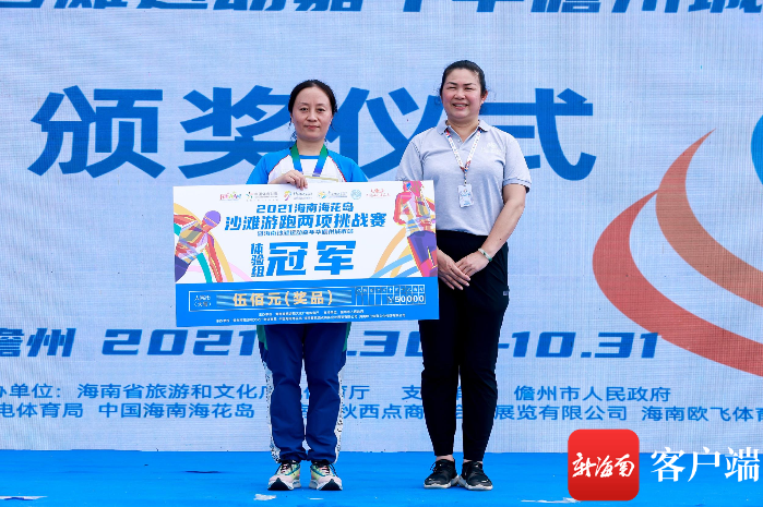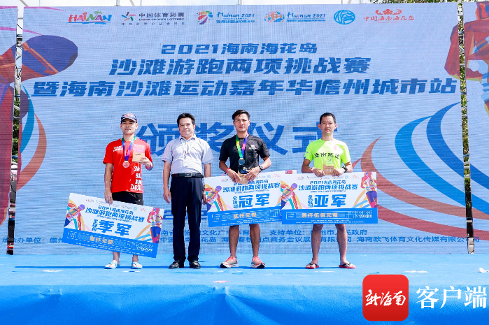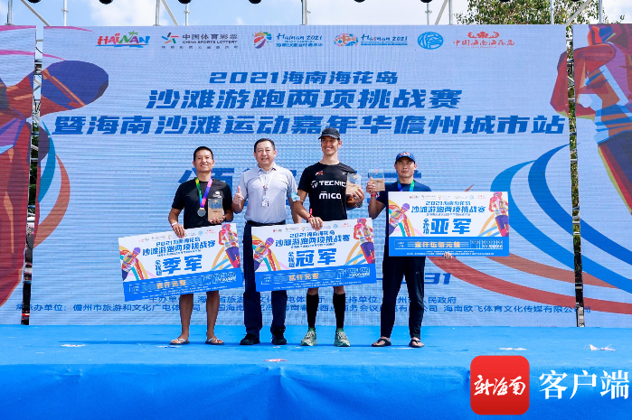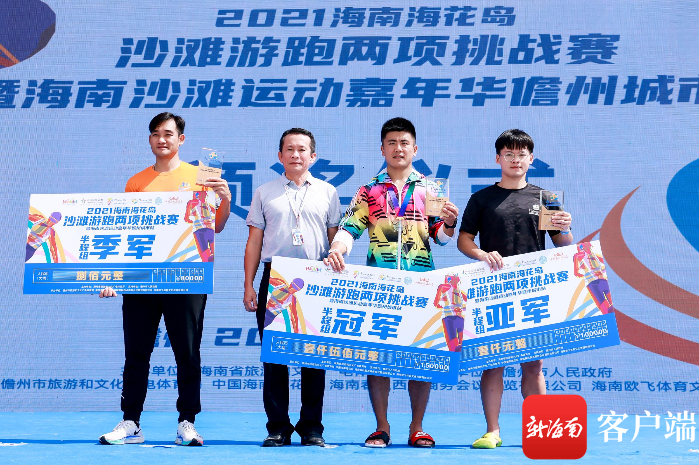 2021海南?;◢u沙灘游跑兩項挑戰賽頒獎儀式現場。記者 李昊 攝