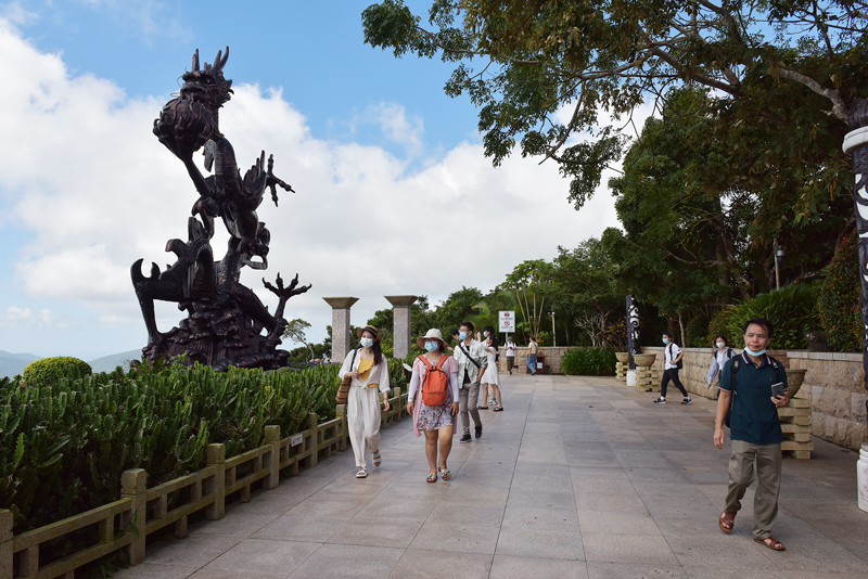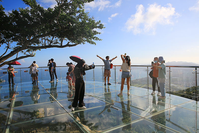 立冬當天正逢周日,亞龍灣熱帶天堂天氣晴好,驕陽似火。三五成群的游客漫步在雨林中賞花觀景,登高望遠,沐浴三亞溫暖的陽光,愉快地在三亞景區旅游度假。在景區中看到,景區熱門景點過江龍索橋、全海景玻璃棧橋及龍雕廣場上人來人往,熙熙攘攘,熱鬧非凡。眾多游客高興地暢游在景區中,樂享海南三亞四季如春的宜人環境。