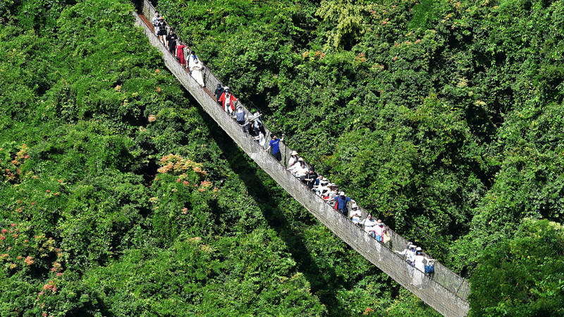 11月7日立冬,三亞亞龍灣陽光明媚,溫暖如春。三五成群的游客暢游亞龍灣熱帶天堂森林旅游區,在雨林中“森”呼吸,沐浴三亞溫暖的陽光,感受冬季亞龍灣熱帶天堂景區宜人的旅游環境。黃慶優 攝