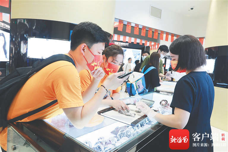 資料圖:在??谌赵聫V場免稅店,不少消費者在免稅店柜臺前開啟“買買買”模式。記者 周達延 攝