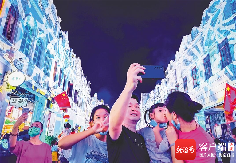 沉浸式數字光影裝扮海口騎樓,吸引游客“打卡”。高林 攝