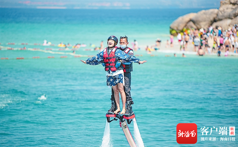 游客在蜈支洲島景區體驗水上項目。阮琛 攝