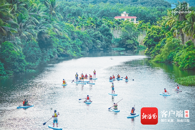 游客在太陽河體驗(yàn)槳板。打浪海南沖浪俱樂部供圖