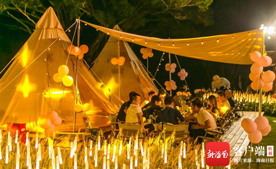 省內一些景區陸續推出了露營地,同時再搭配戶外電影、篝火晚會、海上運動等。“老牌景區”天涯海角游覽區打造了星空營地,將詩和遠方、音樂、美食、美酒、娛樂融為一體,當夜幕降臨,燈光點亮,游客圍坐一起,談天說地,氛圍舒適愜意。