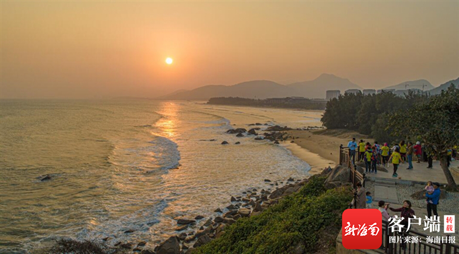 游客在萬寧海邊看日落。