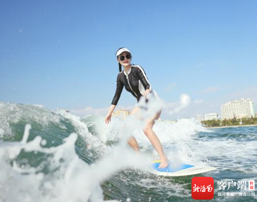 近兩年,尾波沖浪在三亞興起。船舷兩側夾帶沖浪板的造浪艇,猶如躍出水面的飛魚,拉著沖浪者在水面來回穿梭。這種個性水上運動既簡單易上手,又時尚酷炫,在社交媒體的傳播下,吸引了一大批游客前來“解鎖”。