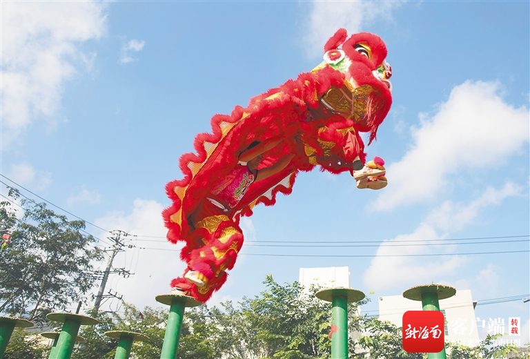海口龍橋鎮舞獅表演現場。 海南日報記者 宋國強 攝