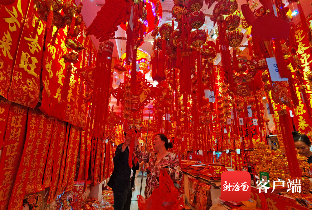 新海南客戶端、南海網、南國都市報1月24日消息(記者 汪承賢)春節將至,海口年味漸濃。各種春聯、“福”字、燈籠、虎年生肖飾品等春節飾品琳瑯滿目,過節零食、臘味等年貨銷售火熱。市民開始忙碌備年貨,迎接即將到來的春節。