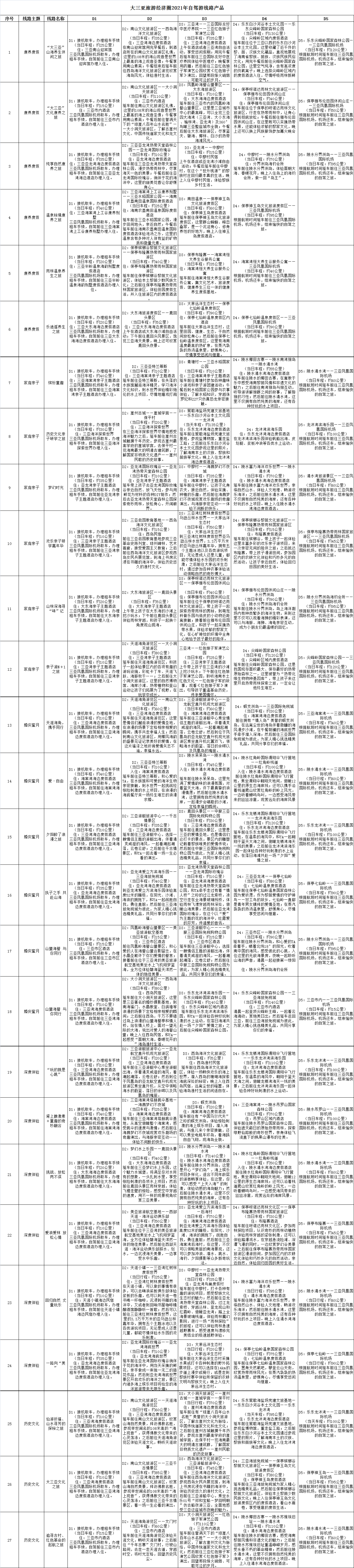為滿足日益增長的自駕游市場需求,有效整合“大三亞”旅游資源,三亞市旅文局委托三亞旅聯開展了“大三亞”旅游經濟圈2021年自駕游線路產品征集活動,經過前期調研走訪、宣傳發動、定向組織,共收到大三亞自駕游產品線路近70條,經過專家評審團進行初步評選,篩選出康養度假主題產品6條、家庭親子主題產品6條、婚慶蜜月主題產品6條、深度體驗主題產品6條和歷史文化主題產品3條,并在“大三亞旅游圈”微信公眾號上進行發布投票。專家評審團結合網絡投票結果和綜合評定,最終選出一等獎1名、二等獎2名和三等獎3名,后續這些入選的精品線路產品將印刷成冊,放置在各旅游咨詢點和汽車租賃點供游客免費取閱。