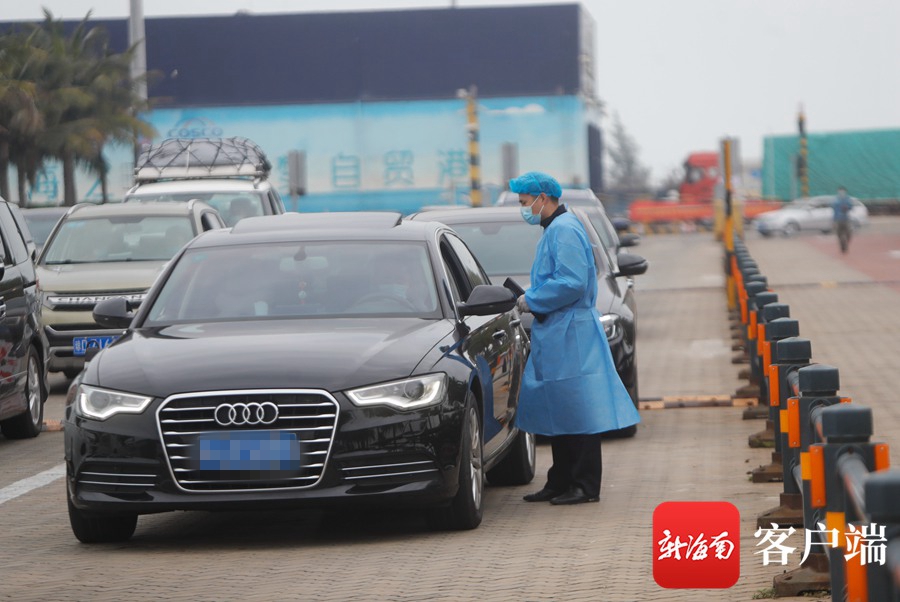 防疫人員在檢查進(jìn)港車輛人員健康碼等。記者汪承賢攝