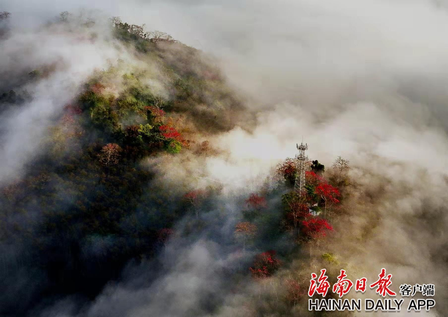 近日,白沙九架嶺木棉花開紅艷艷,朵朵嬌艷似火的木棉花在枝頭綻放,和山野、梯田遙相呼應,構成一幅美好的詩意風景畫卷。