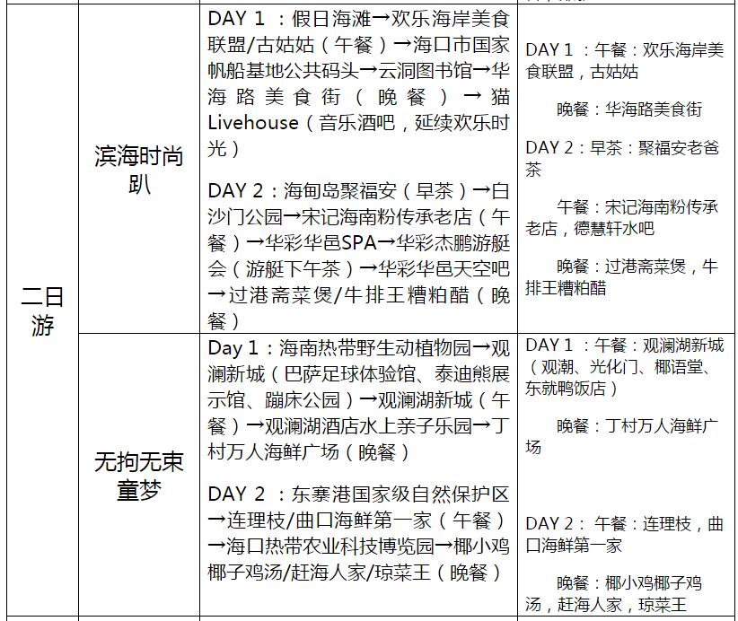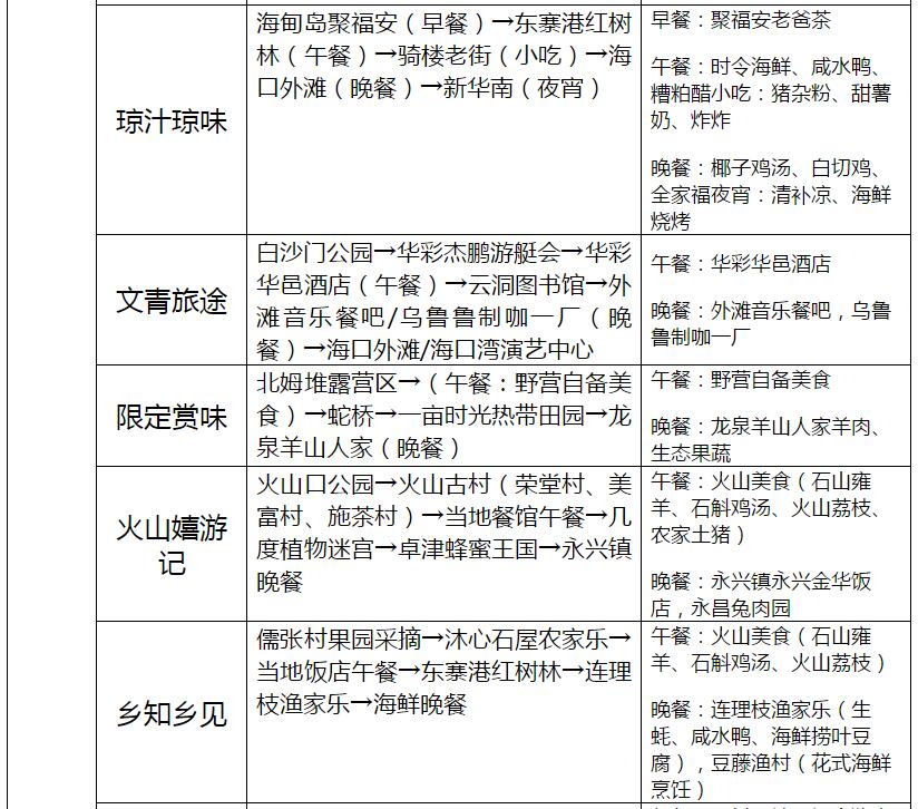 海口23條旅游線路產(chǎn)品信息一覽表
