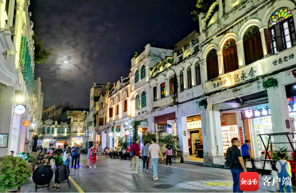 海口騎樓老街夜景美。海口旅文局供圖