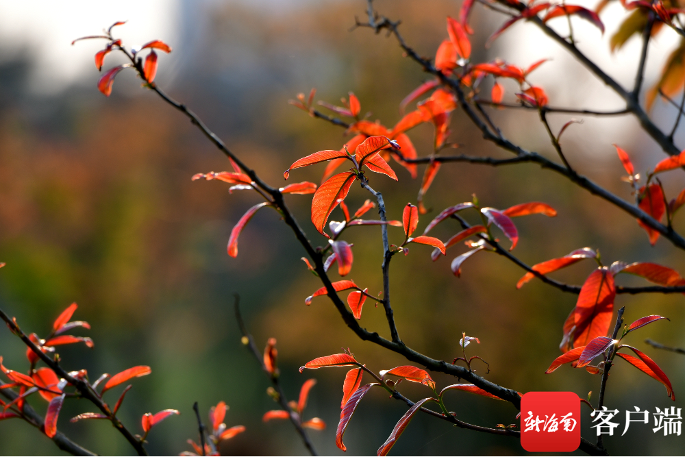 原創(chuàng)組圖 | ??谖逶春庸珗@的葉子:紅在春天里