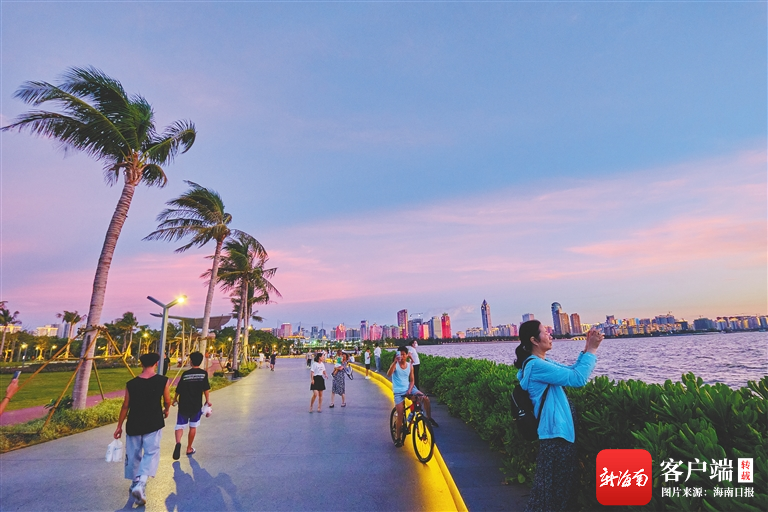 這得益于2019年開工建設的海口灣暢通工程,經過前三期建設,海口灣暢通工程打通了城市的濱水區域,串聯起萬綠園、世紀公園、鐘樓、騎樓老街等景點,形成了一個風光秀麗、元素豐富的公共開放空間,也成為市民游客休閑娛樂的新選擇。