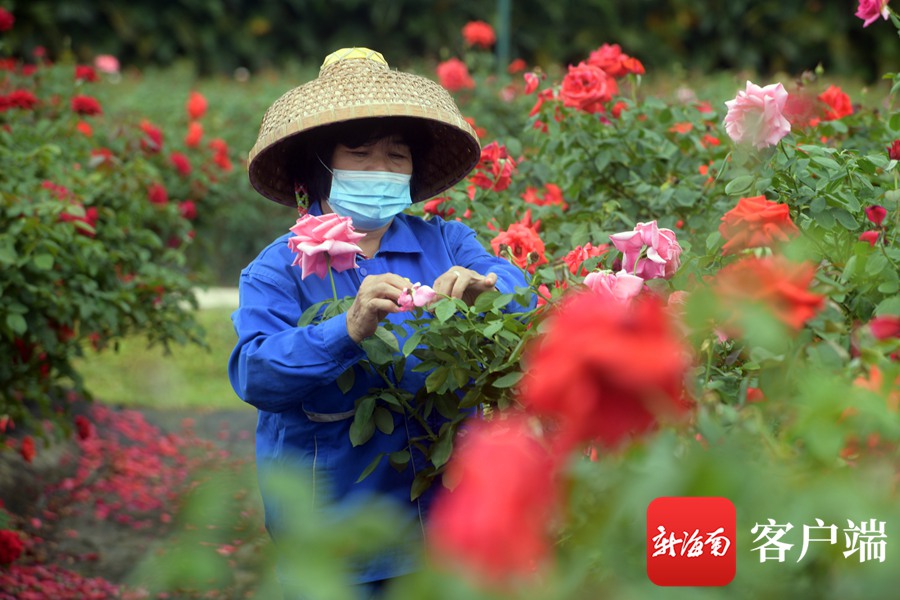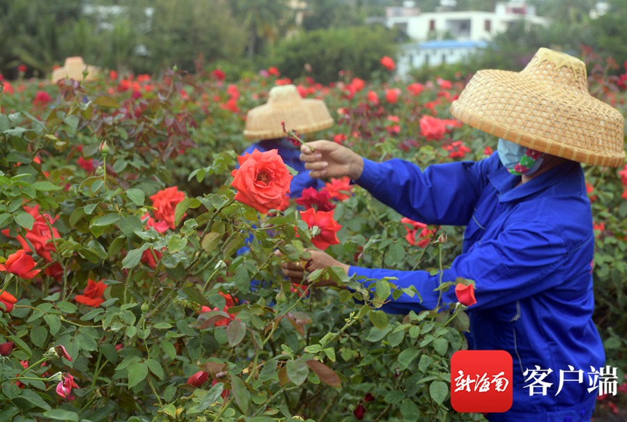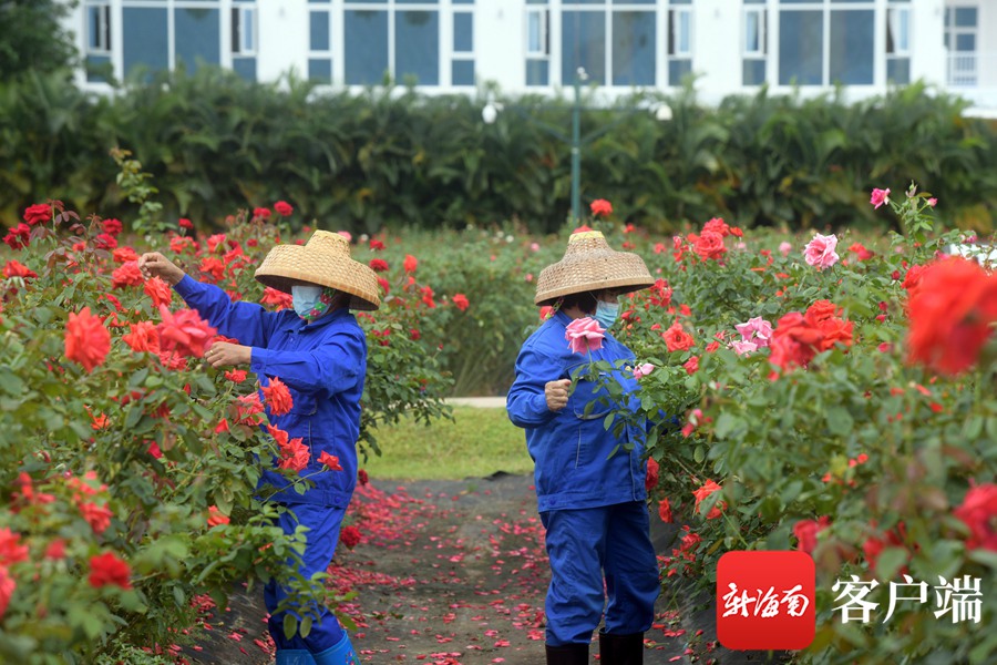 4月20日,三亞玫瑰谷,農民在玫瑰花盛放的田間勞作。記者沙曉峰攝