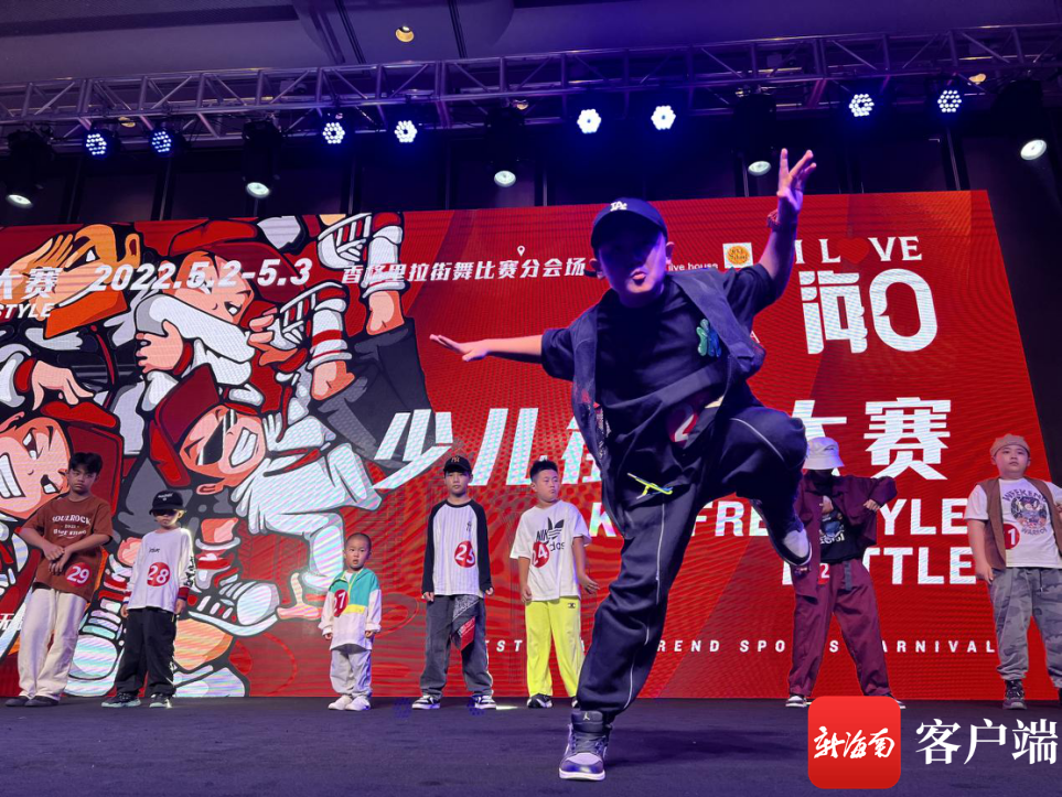 “寶寶加油!”“這個街舞好酷炫呀!”活力寶寶 mini街舞擂臺賽于5月2日在??谙愀窭锢频昱e行,孩子們穿著寬松的T恤、運動鞋,臉上朝氣蓬勃,活力四射地唱跳?,F場歡呼聲一片。熱門綜藝《這就是街舞》中的人氣選手現場演出,將氣氛推向高潮。