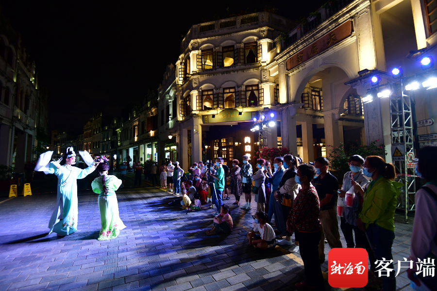 ?新海南客戶端、南海網(wǎng)、南國都市報5月5日消息(記者 陳衛(wèi)東)5月4日晚,海口騎樓老街上演瓊劇精品劇目,吸引不少市民和游客駐足欣賞。人們在游覽老海口風光的同時,還近距離體驗到海口的文化魅力。