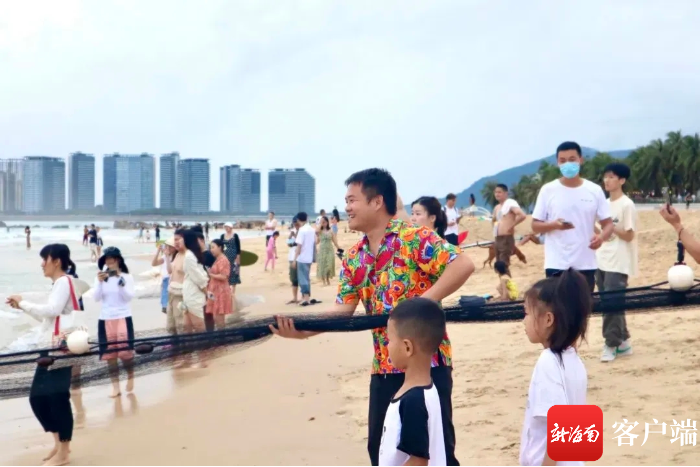 漁家風情備受喜愛!游客在森林客棧體驗拉網捕魚,收獲五月第一“鮮”。
