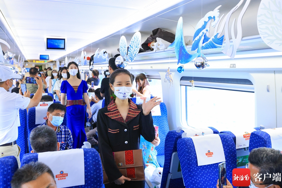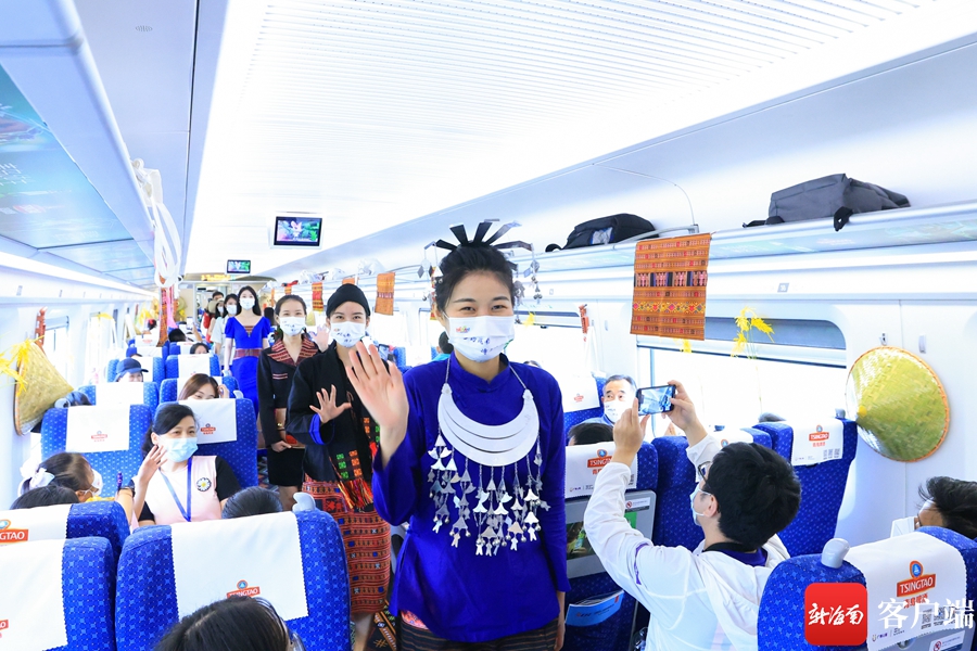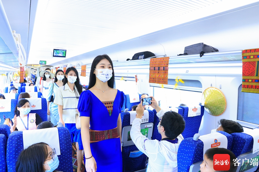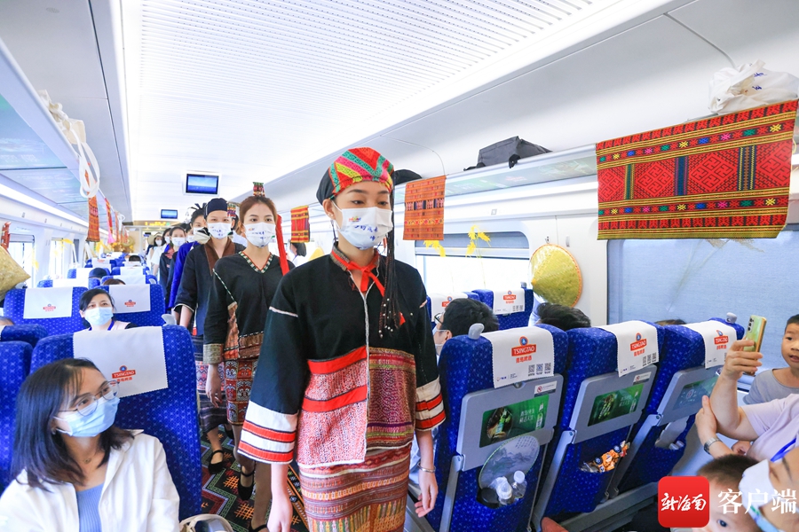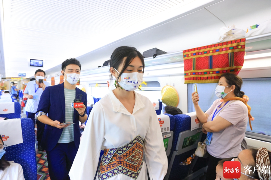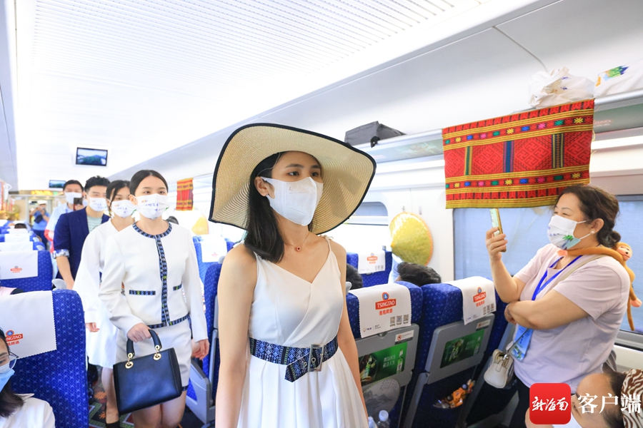 新海南客戶端、南海網、南國都市報6月1日消息(記者 韓星)在列車上看走秀是一種什么體驗?6月1日,“開往鄉野的列車”活動將黎族服飾特色走秀帶上車廂,模特們身穿著結合現代曲線美和黎族特色的服裝緩緩走出,與車廂里黎錦民俗、生態海洋、熱帶雨林的裝飾相融合,充分展示了人文理念與自然相融的美好景象。