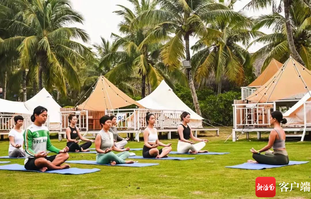 游客在帳篷營地體驗瑜伽。圖源:萬寧旅文公眾號